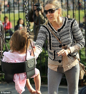 What would Carrie say! But then it¿s not easy pushing a bumper baby stroller in Manolo Blahnik shoes. The 46-year-old Sex and the City star was spotted on a girls¿ day out with her 21-month-old twins Marion and Tabitha She strolled about New York in a muted pink shirt, cute knitted cardigan, casual skinny jeans and sensible flat footwear.